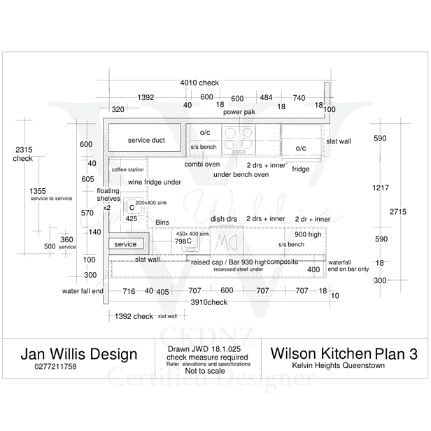 Full working plans and drawings including elevations & specifications